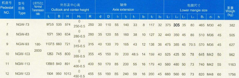 三級NGW型減速器外形及安裝尺寸 三級傳動比三級減速器承載能力表減速機的選用方法a.選用NGW型行星減速器時,應(yīng)根據(jù)使用條件按下式計算:Nx=NsKlK2或Mx=MsKlK2式中In whi