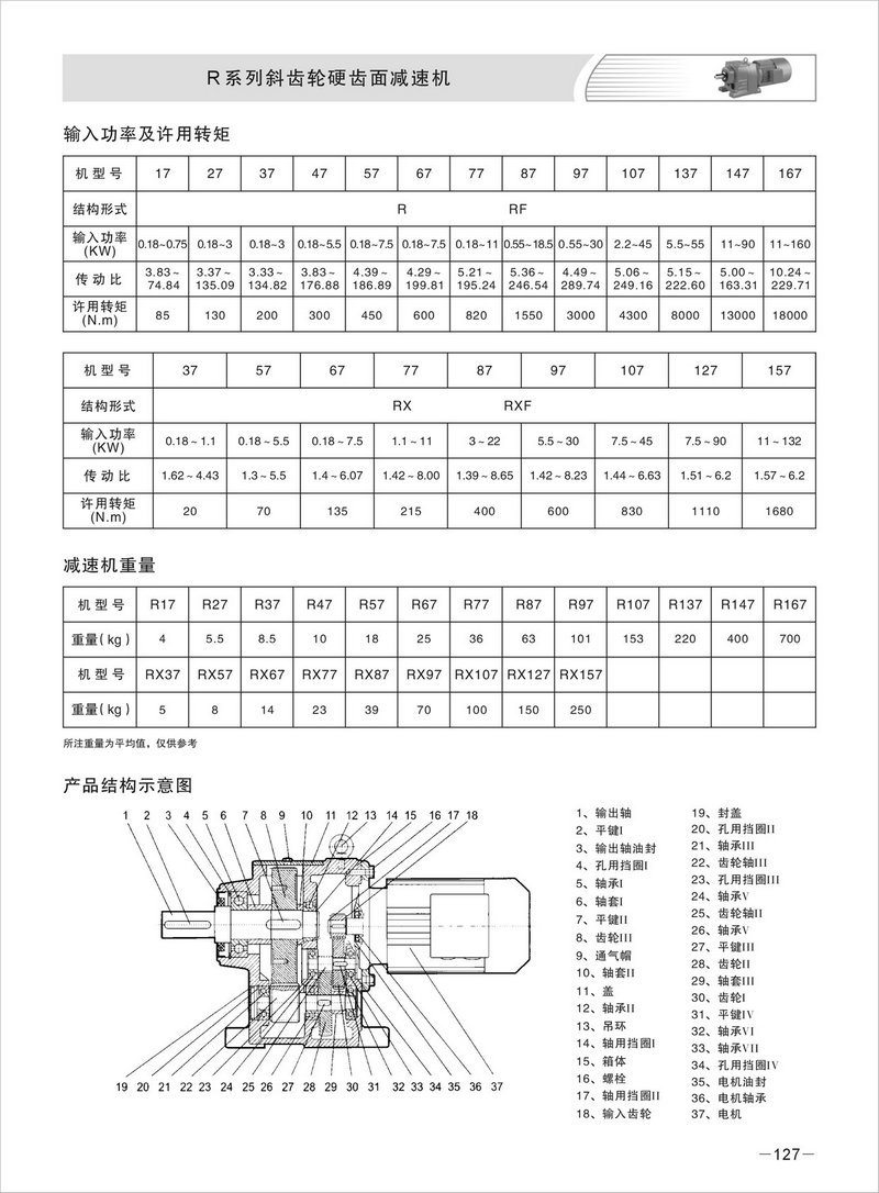 R系列減速機(jī)基本型號(hào):R17R27R37R47R57R67R77R87R97R107R137R147R167   RF17RF27RF37RF47RF57RF67RF77RF87RF97RF107RF137RF147RF167   RX37RX57RX67RX77RX87RX97RX107RX127RX157   RXF37RXF57RXF67RXF77RXF87RXF97RXF107RXF127RXF157