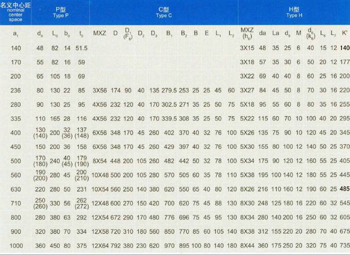 標(biāo)記示例:起重機(jī)減速器二級(jí)傳動(dòng),名義中心距a1=560mm公稱(chēng)傳動(dòng)比20,裝配型式第VI種,軸端形式為P型,則標(biāo)記為:減速器QJR-D560-20-VIP