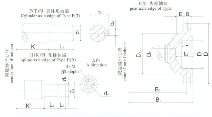 標(biāo)記示例:起重機(jī)減速器三級(jí)傳動(dòng),名義中心距a1=560mm公稱(chēng)傅動(dòng)比50, 裝配型式第III種,輸出軸為齒輪軸端,臥式安裝則標(biāo)記為:減速器QJS560-50-III-cw.